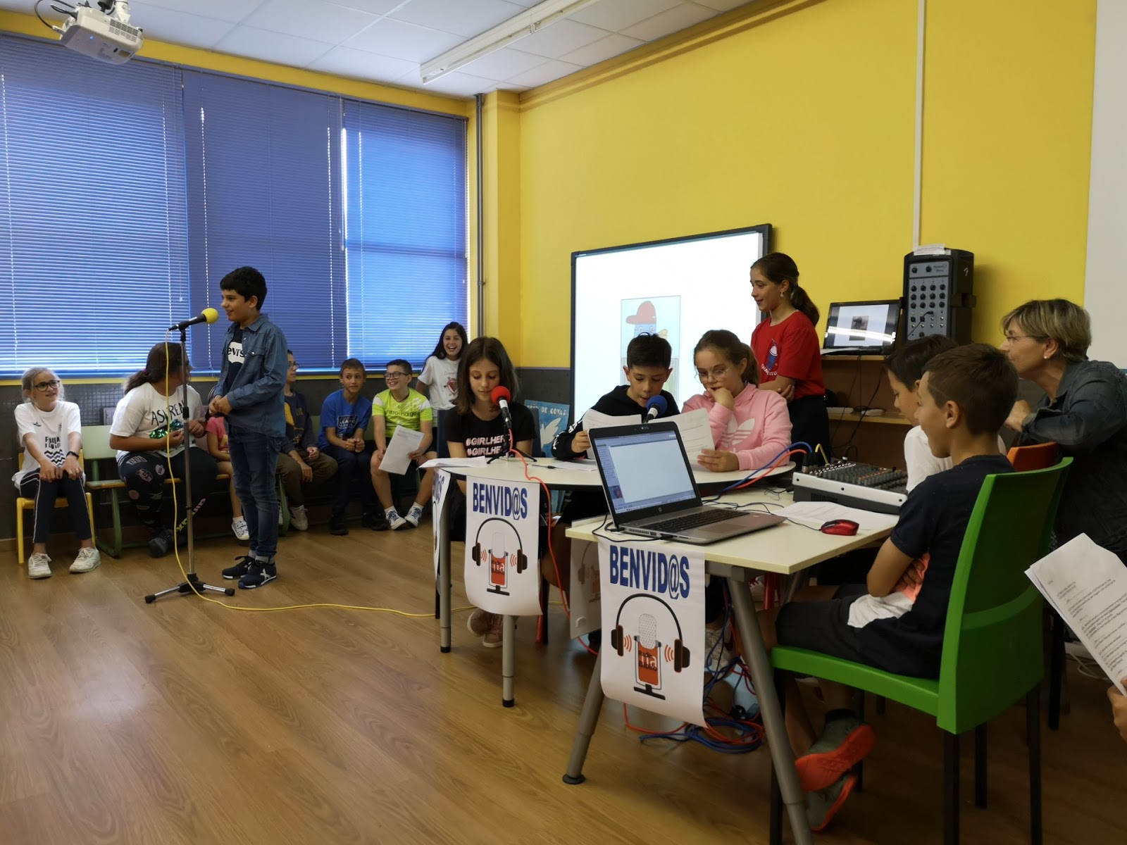 Os nenos e nenas de 5º fixeron un programa, que se gravou en directo na biblioteca, ante un público formado por todo o alumnado e profesorado do colexio e que tiña como obxectivo a presentación oficial da emisora de radio.